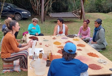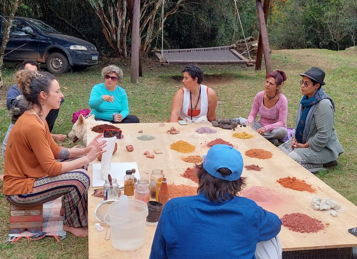 Para além de ensinar a produzir as tintas de terra, minha missão é levar os participantes a uma experiência mais profunda, convidando-os a sintonizar o seu centro criativo à Força Criadora da Grande Mãe, aquela que gera, que nutre, que é fértil, sábia, ancestral e carrega todas as memórias do planeta.