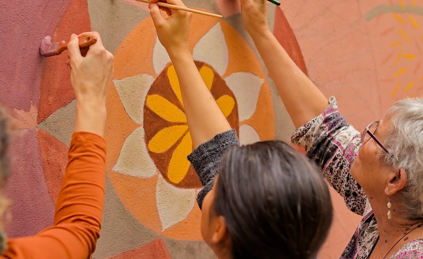 Criação de uma pintura coletiva em uma parede cedida pelo espaço.
