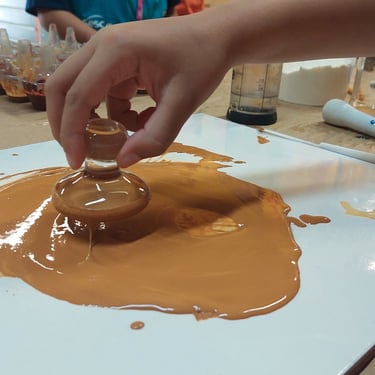 Oficina de geotinta com pintura artística em parede